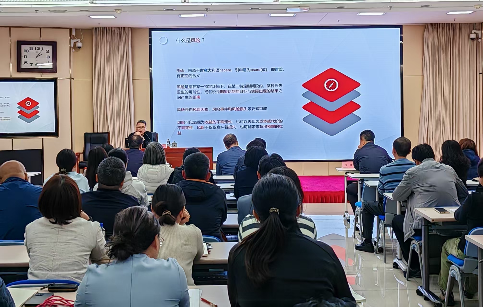 11月14日,集团举办中财传媒大讲堂,由集团副总经理刘峰围绕“树立风险责任意识 提高风险防控能力”作专题讲座。
