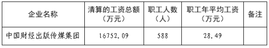 中国财经出版传媒集团2024年工资总额情况 2025-12-26 按照《国务院关于改革国有企业工资决定机制的意见》(国发〔2018〕16号)的规定,现将本企业2024年工资分配信息披露如下: 中国财经出版传媒集团 2025年12月25日